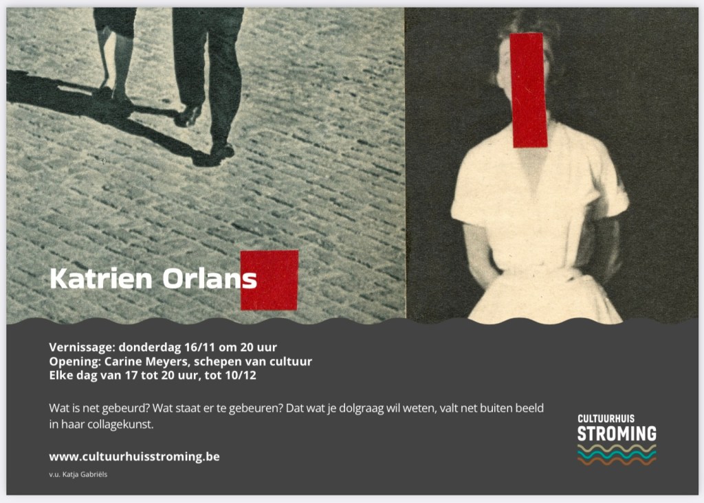Trauma en pijn, vrouwelijke bravoure en sexiness zijn de uitdagende paden die ze vaak tegelijk volgt in haar werk. Expliciet met tweeluikjes, waarin twee fragmenten met elkaar flirten en de afzonderlijke betekenis optillen. Eén plus één is drie. Zowel in haar collages als in de foto’s is de sfeer stil maar geladen. Een zekere onbehaaglijkheid maakt zich van je meester, alsof je getuige bent van een onbestemd keerpunt. Wat is net gebeurd? Wat staat er te gebeuren? Dat wat je dolgraag wil weten, valt net buiten beeld. Katrien Orlans speelt met ons. Aan jou als kijker wordt niet alles verteld. Is jouw verbeelding erger dan de werkelijkheid?